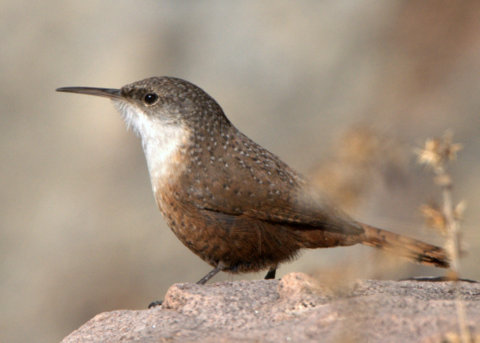 I took a short hike anyway, descending, then climbing, then descending again along a low canyon wall. The stream at the bottom was only partly frozen. The air was cold, and a stiff breeze made it colder. Being midday, I didn’t see much—a Canyon Wren posed for its portrait, a Townsend’s Solitaire called off in the trees somewhere, and a Roadrunner zipped by without pausing. Further down the auto tour road, I was able to grab some pictures of a Prairie Falcon before it flew off.
