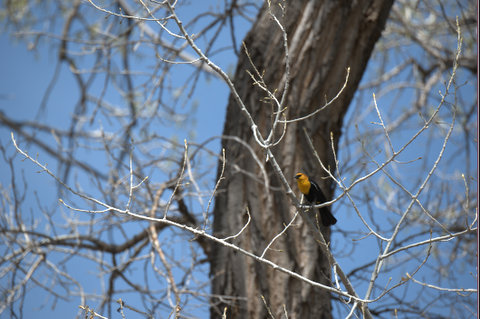 Rule 4: Water attracts birds, but you won’t be able to see them. We chose Brett Gray Ranch because it has year-round water, even in a drought year. We figured the birds would concentrate where the water was, and we were right. However, the plants also responded to the presence of moisture by growing large, leafy branches. Very leafy. So leafy that we couldn’t get a good look at the birds, much less a clear photo. Of course I’m grateful for the rain we’ve been having lately, but I’m thinking my next birding trip will either be in winter or to a relatively leaf-less location such as the beach or desert. I’m tired of fighting foliage.