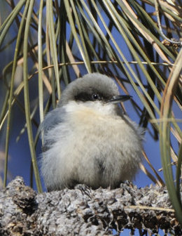Sunday after church three members of the group showed up at our door, eager to get a glimpse of a Lesser Goldfinch, a Black-headed Grosbeak, and a Pygmy Nuthatch (right). As we tromped upstairs to look out the dining room window at my feeders, a flock of at least 30 Black-billed Magpies descended upon my newly-filled suet feeders. I was about to shoo them off before they ate every bite, but our guests rushed to the windows for a better view. I’d forgotten that Magpies are western birds, and they were new and exciting to these easterners! I saw anew the long tails with their iridescent blue-green feathers. What gorgeous birds!