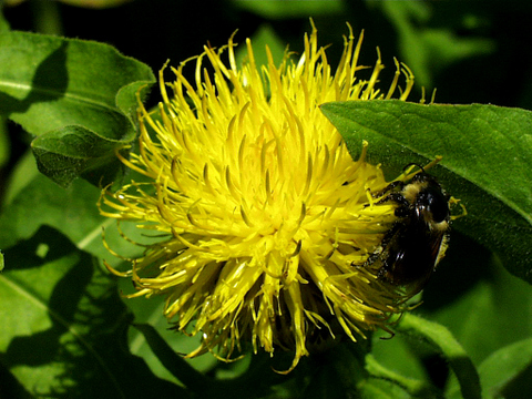 Giant Knapweed, Armenian basket flower, Centaurea macrocephala. Yellow thistle flowers (as you can see here) on tough, drought-tolerant plants. Needs full sun; not fussy about soil.- Bonus plant: I’m still stuck! Does anyone have any ideas?
