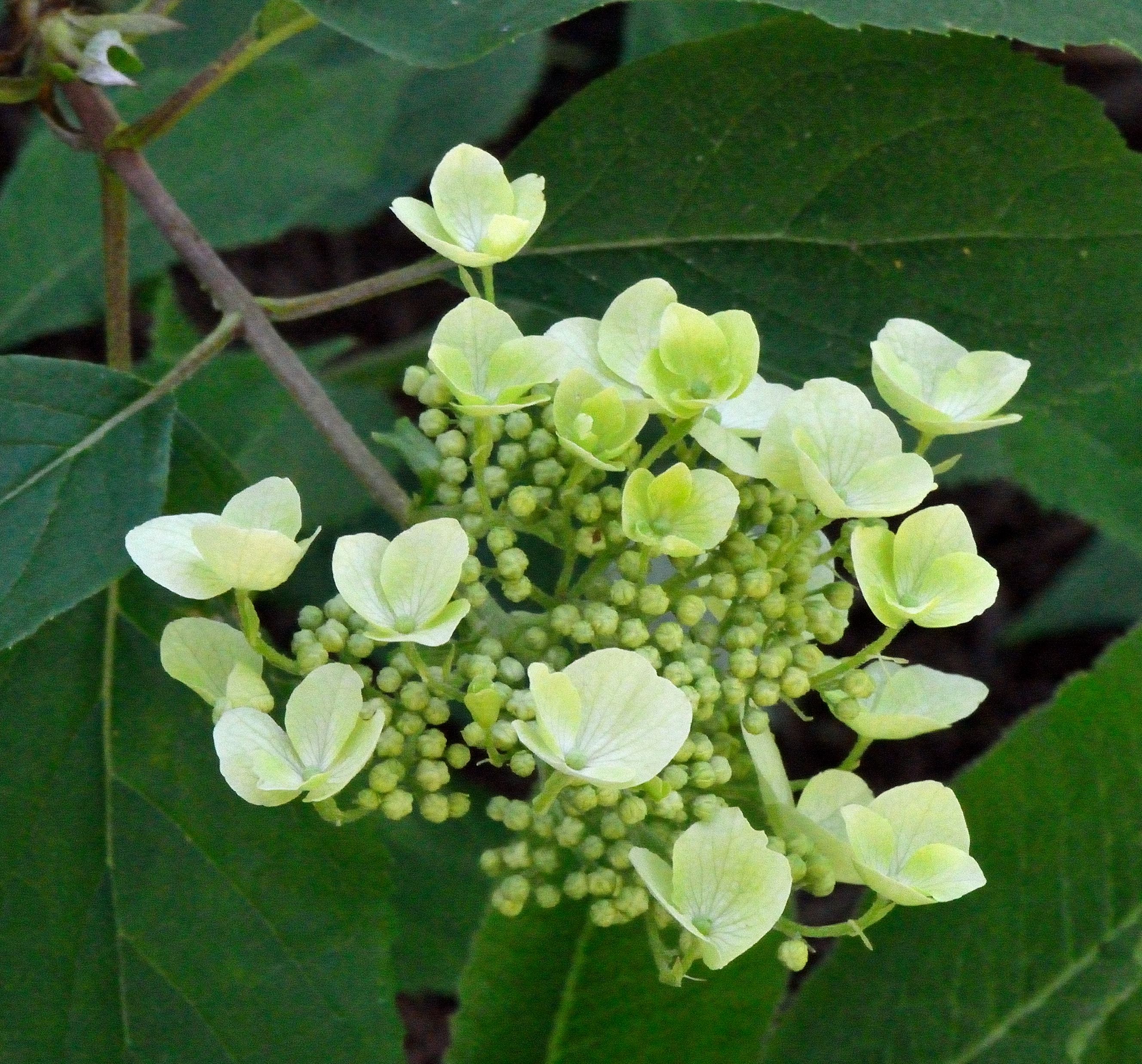 Hydrangeas are another plant whose sepals we admire. For a while, the pink or blue pigment in the sepals is dominant. However, as they begin to fade, the sepals take on a pale green hue. ‘Limelight’ is one cultivar bred especially for its lime green color. Most hydrangeas are only hardy to zone 6, so choose carefully.