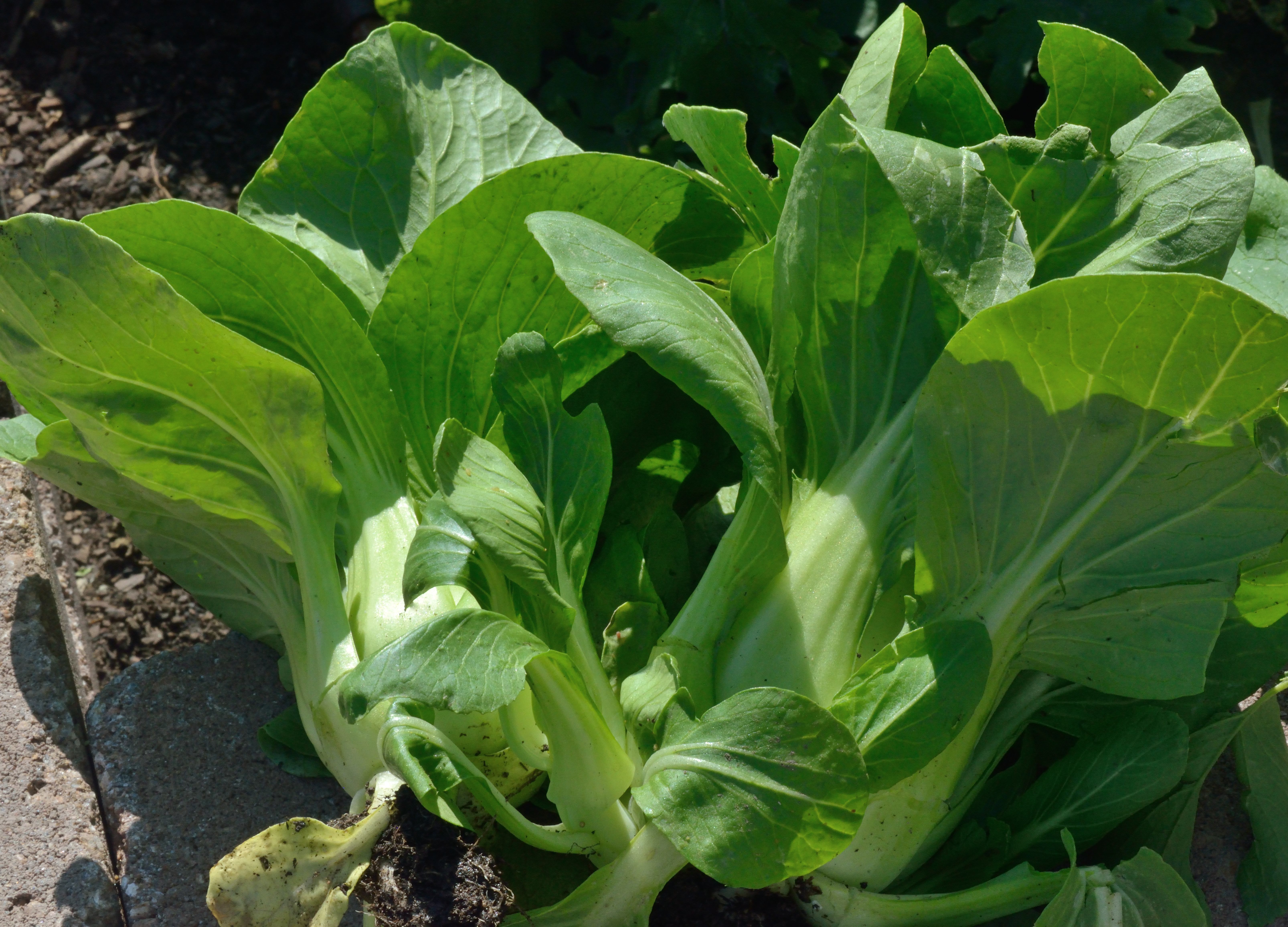 We went away for a week, came back, and discovered that we now have plenty of Simpson Elite and Prizehead lettuce (above), armfuls of kale (top), and nine cute little bok choy plants ready to cut. Chinese stir-fry is on tomorrow’s dinner menu, followed by what we like to call Christmas soup—sausage, tortellini, kale, onions, and tomatoes in broth.