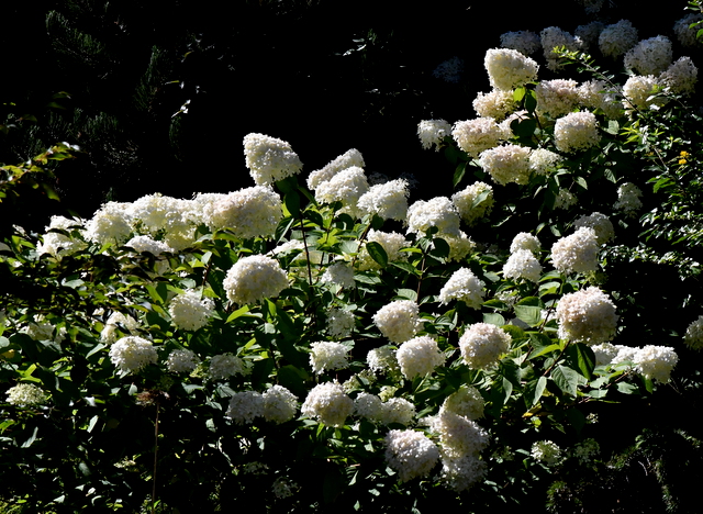 Coming late in the season, I expected to see hydrangeas in all their glory, and I wasn’t disappointed. While the use of such large plants in a small garden was necessarily limited, several types were represented, including the traditional mopheads and my favorite lacecaps.