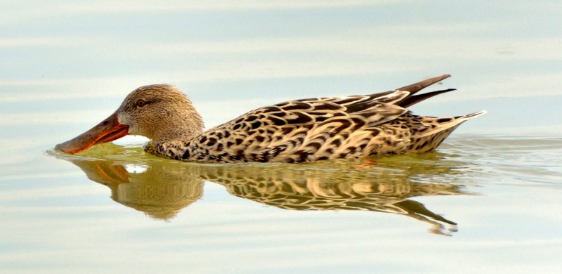 Once I had figured out which male duck was which, I started to learn the females. It was helpful that the transformation into breeding plumage was accompanied by the pairing off of romantic-minded couples. Female pintails lack the huge spike of the males, but their tails do end in a sharp point. Female shovelers were obvious, as they shared their mates’ spatulate bill.